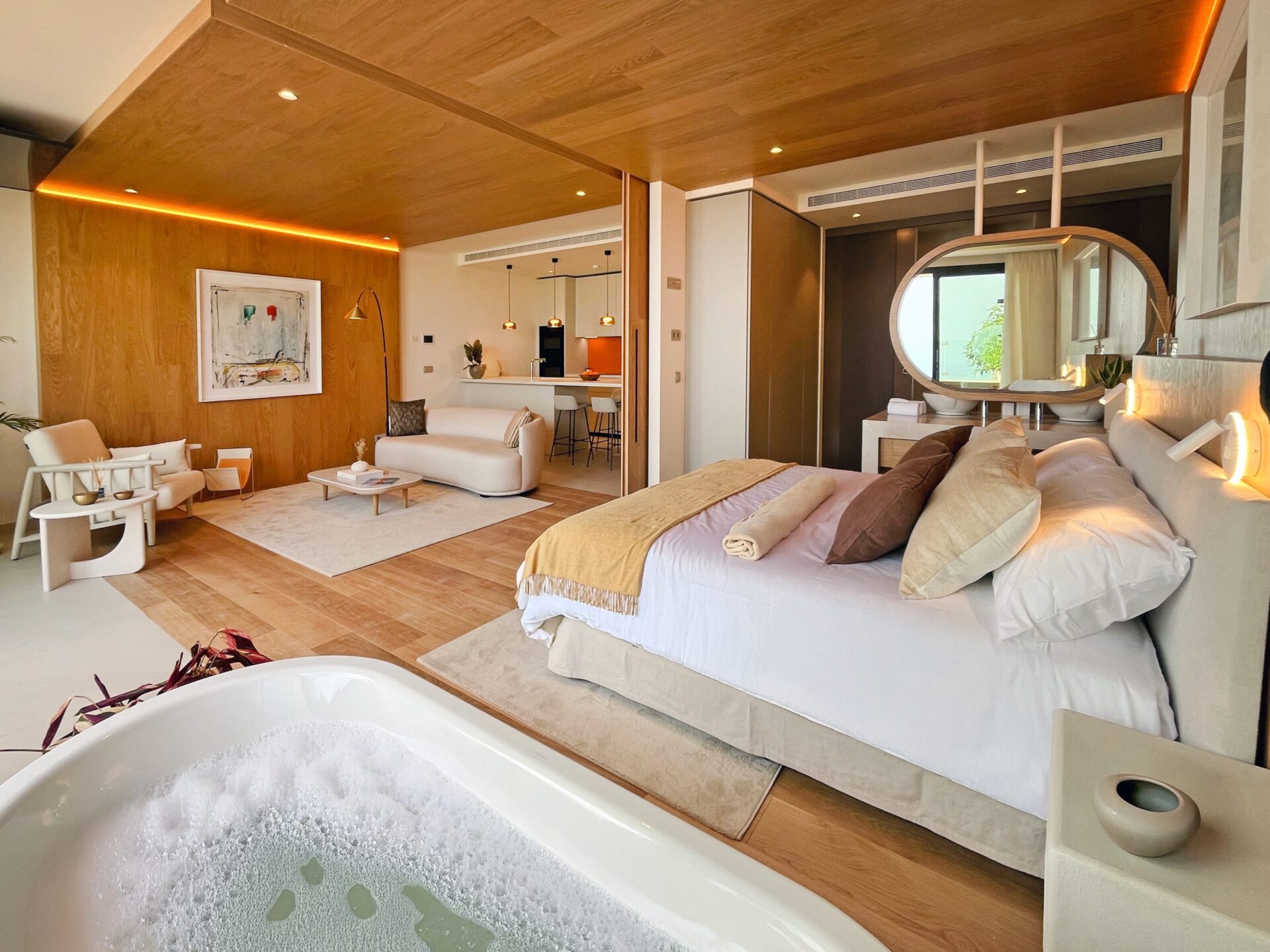 A pioneering residential development offering 233 properties with 1, 2, and 3 bedrooms, designed to connect with the essential elements of life: water and nature. Featuring more than 7,000 m2 of lush green areas and spectacular waterfalls with panoramic Mediterranean Sea views. Built to BREEAM sustainability standards with one of the first high-efficiency greywater collection systems in the region. Unit types include Garden Villas with private pools, Deluxe Apartments with panoramic sea views, and Sky Penthouses with private pools and magnificent terraces. Located just 2 minutes from Higueron Resort with Platinum Beach Card access to the Sport Club, Spa, Beach Club, and 10 world-class restaurants. Features include smart home automation, aerothermal heating, underfloor heating, Bosch/Miele appliances, and EV charging. Free residential shuttle service included.